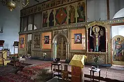 One of the first stone buildings within the Kremlin walls was St. Nicholas Cathedral, built in the early 14th century. It was named 'Nikolskiy', later — 'Staro-Nikolsky'. It very much resembled the Dormition Cathedral in Zvenigorod. The wooden statue of Saint Nicholas of Mozhaysk was carved for that cathedral, but later moved to the Church Over-the-gates.[4][5]