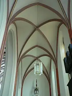 The hall has a unique use of ribs complemented with tracery. The clash of the ribs in the crown is smooth without any keystone. Ribs are ended in the consoles with floral and animal elements.