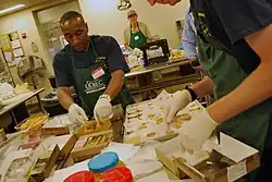 Sailors preparing lunch at Our Daily Bread Employment Center during Fleet Week
