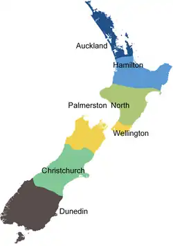 In New Zealand there is one archdiocese (Wellington) and five suffragan dioceses (Auckland, Christchurch, Dunedin, Hamilton and Palmerston North). The church is overseen by the New Zealand Catholic Bishops' Conference. Its primate is the Metropolitan Archbishop of Wellington, who has been Paul Martin since 2023.[6]