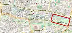 A tram railway runs along the southern outskirts of the park: it is used by lines 4, 5 and 6.