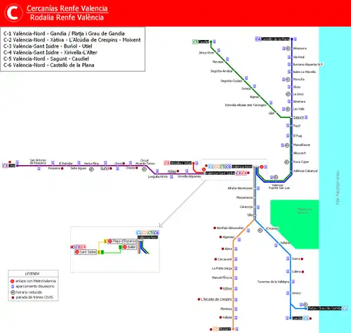 2. ^ "Renfe - Map of Valencia Commuter Lines". Archived from the original on 2014-01-23. Retrieved 2013-01-06.