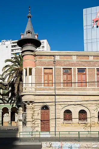 Between 1885 and 1888, Ebner built his home on the same site as the brewery. The first floor was used as offices, while the second served as his residence. Its architect is unknown, but the building was probably designed by German architect Adolf Möller.[1] According to the Möller family archive, Adolf Möller emigrated to Chile in late 1889, and returned to Germany in 1910.[5]