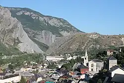 View from the castle esplanade of the town of Saint-Michel. In the background, the Pas-du-Roc.