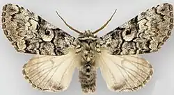 Charadra deridens (laugher or marbled tuffet moth) is a moth of the family Noctuidae. It is found in Ontario, Quebec, New Brunswick, Nova Scotia, Prince Edward Island, British Columbia, Saskatchewan and Manitoba in Canada, through most of the United States except the south-western states.