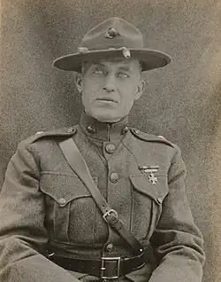 After the American entry into World War I in April 1917, Doyen had been chosen to command the 5th Marine Regiment, which had been the first unit of the USMC to be sent to France, having arrived there in June 1917, along with the first elements of the American Expeditionary Forces (AEF). Shortly afterwards, Doyen received a promotion to brigadier general. The 4th Marine Brigade was created with the arrival in France of the 6th Marine Regiment and the 6th Machine Gun Battalion, in addition to the 5th Marines, with Doyen being given command of the brigade towards the end of October 1917.[1] The brigade eventually became part of the 2nd Division of the United States Army, which began to be formed at around the same time. A headquarters for the division began forming. Doyen, then the most senior officer present, assumed temporary command until the first week of November when Major General Omar Bundy, U.S. Army, took over, with Doyen reverting to control of the 4th Marine Brigade. Although brief, he was still the first marine officer to command a division.[1]