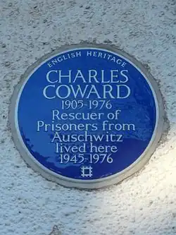 In 1963, Coward was named one of the Righteous Among the Nations and had a tree planted in his honour in the Avenue of Righteous Gentiles in Yad Vashem. In 2003, Coward was further commemorated with the mounting of a blue plaque at his home at 133, Chichester Road, Edmonton, London, where he lived from 1945 until his death. The North Middlesex Hospital has a ward named "Charles Coward" in his honour.