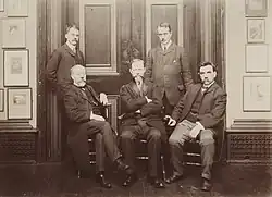 [standing:] C. F. Stuart, J. Dudley Johnston; [sitting:] Dr. J. W. Ellis, Dr. C. Thurstan Holland, Chairman, Charles F. Inston, Secretary - Northern Photographic Exhibition, Liverpool, 1908.