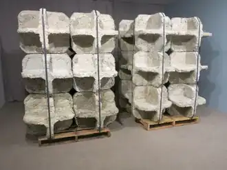 In the 2010s, Goldman has developed a green building material called RE>CRETE> made from pulped newspapers and junk mail, shredded CDs, DVDs and credit cards, cut-up home electronic wires, dryer lint, and ground-up packing foam.[27][7][28] The material is an open source project that can be packaged as architectural modules or dry-mix bags; it is included in the Material ConneXion libraries worldwide.[29][28] Roberta Smith singled out Goldman's RE>CRETE>BLKS in the Museum of Arts and Design's "NYC Makers: The MAD Biennial" (2014) as one of the projects exemplifying critical thinking about innovation and purpose.[27] His exhibition at the University Art Museum at UMass, Amherst (2016) consisted of two identical geometric RE>CRETE> units that formed open, four-chambered building blocks.[7]
