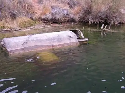 Charles Harvey Spencer (1872-1968) was a prospector who arrived at Lee's Ferry in 1910 in search of gold hidden in shale of the Chinle Formation. His company, American Placer Corporation, processed the shale by creating a mud and then removing the gold deposits by mercury amalgamation, which required a steady source of power. Finding a coal seam up river, Spencer commissioned a San Francisco company, Robertson–Schultz Co., to build the stern-wheel paddle steamer, Charles H. Spencer, for the American Placer Corporation. James Robertson and Herman Rosenfelt built the ship.[2] It was 92.5 feet long, 25 feet abeam and had a draft of 18 to 20 inches.[3]: 129  A 110 horse-power marine boiler powered a 12-foot stern paddle. The various parts were manufactured in San Francisco, shipped by rail to Marysvale, Utah, and conveyed by ox-cart to the mouth of Warm Creek, where the boat was assembled. The boat averaged 5–6 tons of coal on each trip. But by the end of the summer the operation was curtailed. The boat was docked and then abandoned in 1914. During a flood in 1921, the boat sank in shallow water. Later the superstructure was stripped of its lumber.[2] Its boiler remains in the river marking the site of its sinking and a historical marker is located above it on the bank, about 1/4 mile east of the end of Lees ferry road.[4]