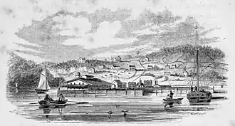 Pier at Piermont and Erie Railroad terminal in the 1850s.