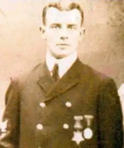 Rank and organization: Gunner's Mate First Class, U.S. Navy. Born: 26 December 1878, New York, N.Y. Accredited to: New York. G.O. No.: 160, 26 May 1904.