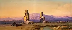 He was a rapid worker, and, besides over two thousand sketches which he left at his death, he often executed twelve to sixteen finished works in one year, and between 1838 and 1881 he exhibited no fewer than 350 at the London exhibitions. His first exhibit at the Royal Academy was, in 1838, ‘Well at Bacharach on the Rhine,’ but the majority of his pictures — 324 works in all — were shown at the gallery of the New Society of Painters in Water Colours, now the Royal Institute of Painters in Watercolours, which he joined in 1846, on the introduction of his friend Louis Hague. His name first appears at the Royal Manchester Institution exhibition in 1842 as a contributor of six drawings, all of buildings in Italy. One of these, ‘Naples with Vesuvius,’ is probably that now in the South Kensington Museum. The British Museum possesses two fairly good examples of his work—‘View of City of Tombs, Cairo,’ 1863, and ‘View in the Forum, Rome’—and many others are in the possession of his widow.[1]