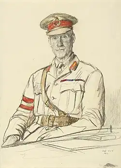On the outbreak of the First World War he was appointed General Officer Commanding-in-Chief of Eastern Command until 7 June 1915 when he became GOC-in-C of 2nd Army, Central Force. Then on 4 July 1916 he took command of 11th (Northern) Division on the Western Front (normally a major-general's command) until 1 December when he became GOC IV Corps. Finally on 29 June 1918 he returned to his post as GOC-in-Chief at Eastern Command:[14] he was made a colonel commandant of the Royal Artillery in March 1919[15] and retired from the army in February 1920.[16][8][17][18][19]