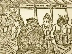 Judge Pratt's 1864 ruling was derided in an editorial cartoon by a local white-owned newspaper that showed blacks and whites riding side by side. Using a racial epithet, it accused Pratt of being partial to African Americans, and questioned whether the light-skinned Brown was really black, or just filing suit for the monetary award.[25] A white editor of The Sacramento Daily Union, on the other hand, said of Pratt's decision, "his argument is lucid, and his decision, we believe, chimes in with the sentiment of the people".[26]