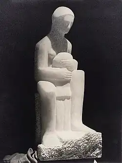 Mayer received her first public commission in 1953: Mother and Child, a carved alabaster piece for the maternity ward of Epsom General Hospital. The sculpture, however, was criticised as being “too modern”, and never put on display.[8]