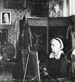 Charlotte M.B. Schreiber, working in her studio at Erindale, Ontario, 1895