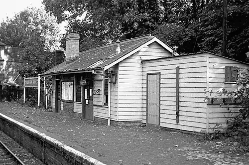 Charlton Kings was a small station with a wooden building. The line through it was particularly busy during the First World War and the Second World War with heavy troop and machinery movements on the M&SWJR.But traffic declined rapidly after the Second World War, and Charlton Kings also faced competition from road transport services. The station was reduced to "halt" status in 1956, with goods facilities withdrawn a couple of years before that.
