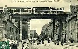 The station building at St. Brieuc survives today, used as a bus station. A viaduct at St. Brieuc also survives.[8] The Viaduc du Douvenant, Viaduc de Val Hervé, Viaduc de Toupin and Pont des Courses survive.[9]