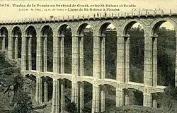 During World War Two, the CdN was requisitioned by the Germans for the construction of the Atlantic Wall. The Resistance were active in the area, with over fifty acts of sabotage recorded. In most cases the train crews were pre-warned and no injuries occurred. One of the most impressive was the destruction by the French Forces of the Interior of the viaduct between Jaudy and Tréguier on 15 August 1944, splitting the network in two.[2][5]