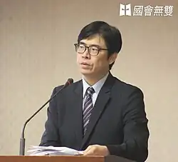 Chen Chi-mai (Chinese: 陳其邁; pinyin: Chén Qímài; Wade–Giles: Ch'ên2 Ch'i2-mai4; Pe̍h-ōe-jī: Tân Kî-māi; born December 23, 1964), also known as Comay Chen,[1] is a Taiwanese politician and physician who has served as the mayor of Kaohsiung since August 24, 2020. He has served as spokesperson of the Democratic Progressive Party and the chief executive officer of its Policy Research and Coordinating Committee. A physician from Keelung, Chen started his political career by becoming member of the Legislative Yuan in 1996 and served as legislator for almost eight years before becoming the spokesperson of the Executive Yuan.