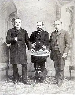The Iquique revolutionary junta (from left to right): Waldo Silva, Vice President of the Senate; Jorge Montt Álvarez, captain of the ship and president of the same; and Ramón Barros Luco, president of the Chamber of Deputies.