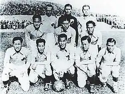China's first-ever international representative match was arranged by Elwood Brown, president of the Philippine Athletic Association, who proposed the creation of the Far Eastern Championship Games, a multi-sport event considered to be a precursor to the Asian Games.[3] He invited China (Republic of China) to participate in the inaugural 1913 Far Eastern Championship Games held in the Philippines, which included association football within the schedule. To represent them, it was decided that the winner of the football at the Chinese National Games in 1910 should have the honour to represent the country, where it was won by South China Football Club.[4] The club's founder and coach Mok Hing (Chinese: 莫慶) would become China's first coach and on 4 February 1913 in a one-off tournament game held in the Manila he led China to a 2–1 defeat against the Philippines national football team.[5]