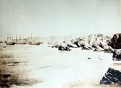 The Spanish ships arrived at the port of Valparaíso, Chile, on April 18, 1863. Spain had recognized Chilean independence since the 1840s, and the two nations had maintained diplomatic relations. The expedition was cordially received, and the admiral exchanged visits with local authorities. The vessels left Chile in July 1863 amicably and moved on to Peru.[3][4] Even though Spain had never recognized Peruvian independence, which had been declared in 1821,[2] the squadron received a friendly welcome at the port of Callao. It stayed in port for a few weeks and then sailed bound for San Francisco, California, United States.[3][4]