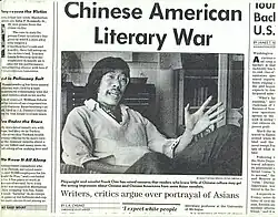 Frank Chin and others have been vocal critics of popular Chinese American authors, particularly Chinese American women authors, such as Maxine Hong Kingston and Amy Tan. Chin argues that Tan and others paint a world in which Chinese Americans must repudiate "the icky-gooey evil of Chinese culture".[6] Others have criticized Chinese American women authors for criticizing sexism in Chinese culture; in so doing, critics argue, these women are participating in the "racial castration" [7] of Chinese and Asian American men, who are already "materially and psychically feminized" by mainstream, white American culture.[8]