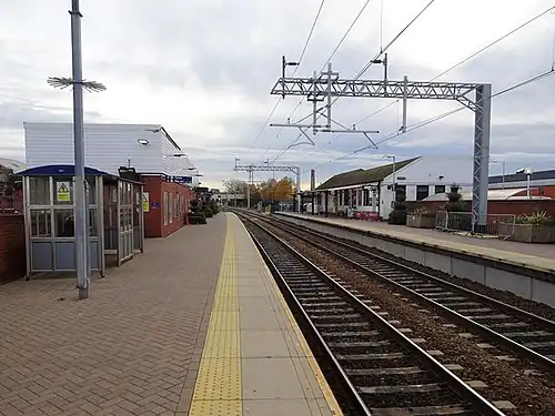 Electric trains, serving the station, commenced on 11 February 2019 utilising Class 319 electric multiple units.