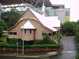 The expansion of the adjacent Lang Park sports ground (now Suncorp Stadium) in about 2001 further encroached on the church. Given the height of these modern developments, the church can no longer easily be seen from the surrounding area. The church can no longer be accessed from Hale Street but can be reached from Chippendall Street.[1]