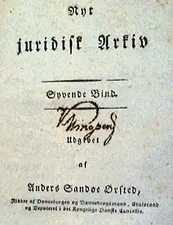 Christian Klingberg's signature on the title page of a volume of A.S. Ørsted's Nyt Juridisk Arkiv (7th volume, 1814).