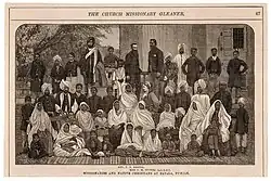 Missionaries F. T. Baring and C. M. Tucker with native Christians at Batala, Punjab, 1880