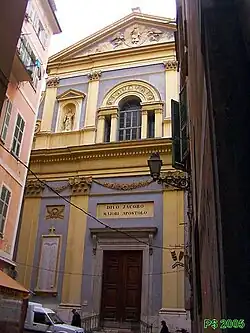 Church of the Gesù, Nice also known as The Church of Saint-Jacques-le-Majeur of Nice (French: Église du Gesù or French: L’église Saint-Jacques-le-Majeur) is a Roman Catholic church located on Rue Droite in the old town of Nice in the south of France. It is in the Baroque architectural tradition. The church became a parish in 1802 under the patronage of Jacques le Majeur.