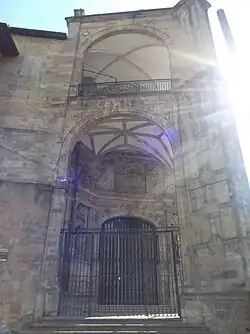 The Renaissance façade was built in the year 1548 to generous proportions and with rich decoration characteristic of the Renaissance. Around the arches there are small sculptures of low relief, with the form of heads, symbol of the anthropocentrism that dominated the Renaissance. The great majority of the heads contain wings of angels behind them; and middle these, in the central keystone, there is a larger sculpture in the form of a shield with the year 1548 recorded in it, as a signature of the builder.