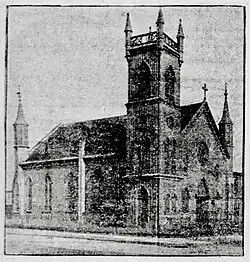 Newspaper image of the church building as it looked in 1888.