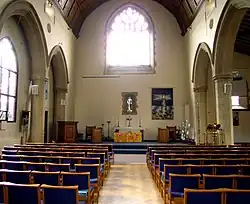 In 1989 the church was reordered, turning the seating around from facing the east to facing the west. At about the same time a new smaller altar was installed and new communion rails fitted. The pulpit was boarded in and the baptismal font moved to the northeast corner of the church.