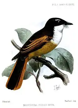 1. ^ BirdLife International (2016). "Rhipidura fuscorufa". IUCN Red List of Threatened Species. 2016: e.T22706815A94091935. doi:10.2305/IUCN.UK.2016-3.RLTS.T22706815A94091935.en. Retrieved 12 November 2021.