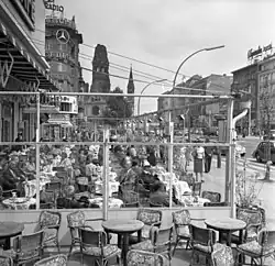 After World War II and the division of Germany the area around the Zoologischer Garten railway station developed to the West Berlin city centre in the Cold War era. The process was reinforced by the building of the Berlin Wall in 1961, followed by the opening of the Europa-Center high-rise on Breitscheidplatz two years later. After the German reunification in 1990, the central administrative functions of reunified Berlin are today again located in Mitte. Nevertheless, City West has struggled to maintain its status as "second centre" and one of the main commercial areas of the city beside Alexanderplatz, Friedrichstraße and Potsdamer Platz, stressing its distinct boulevard character and the exclusive range of items. Recent building projects like the Zoofenster document these efforts.