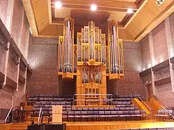 The school's sports facilities include a multi-purpose indoor sports hall, a 25-metre swimming pool, a gym, a rooftop AstroTurf football pitch and grass playing fields and athletics tracks at Grove Park, Lewisham.[35] Music facilities include three ensemble rooms, ten rehearsal rooms and a music technology lab.[36] Other facilities include the Great Hall, a sixth form common room, a bookshop, a library, an archive room, three ICT labs, facilities for the Combined Cadet Force (including a rifle range), a drama studio, two playgrounds and a drama theatre. The Great Hall houses a Walker organ which was moved from the previous school building and put into a new casing. The organ has 3 manual departments, 61 notes and a pedal department with 32 notes as well as 43 stops, 4 tremulants and 6 couplers.[37][38] The drama theatre (Winterflood Theatre) was rebuilt in 2009 at a value of £1.3 million. The project was jointly funded by City entrepreneur Brian Winterflood and the City of London Corporation. The new theatre was designed by architectural firm RHWL and built by Wilmott Dixon Construction.[39][40][41]
