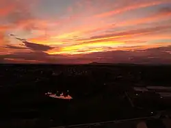 In 1964, the Montgomery County planning commission decided that Clarksburg would be the last community along Interstate 270 that would have large-scale development.[6] The Montgomery County Council adopted a master plan for Clarksburg in 1968, which rezoned land for a mix of townhouses and single-family houses.[7] Another master plan was adopted in 1994.[6] This master plan set forth the areas to be developed, with targets for housing, retail, employment and transit. A network of roads and infrastructure was mapped out to handle the growth expected as the town grew to 40,000 residents. The center of this plan is the Town Center District, which contains a retail area connected to the historic town business district. It was planned to be built early on, but had not broken ground by 2010, to the dismay of some residents.[8] A Harris Teeter-anchored shopping center opened in 2013, and a large mall called Clarksburg Premium Outlets opened in October 2016. The shopping complex has over 90 stores and provides jobs for the region.[9]