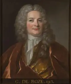 De Boze was born at Lyon. Studying in Lyon and Paris, and settling in the latter around 1700, he gained the support of Nicolas-Joseph Foucault and thus (in 1705) became a pensionary of the Académie des inscriptions et belles-lettres. In 1706 he was made the Académie des inscriptions' perpetual secretary and in 1715 he was elected to the Académie Française. In 1719 he was made curator or garde of the Cabinet des médailles et antiques, a post he held until his death. With his student and assistant Jean-Jacques Barthélemy he developed a method of classifying medals and in 1723 completed an "inventory of medals, engraved stones and other antique rarities in the Cabinet du roy". In 1727 he was elected a member of the Académie royale de peinture et de sculpture and on 6 April 1749 even became a Fellow of the British Royal Society. He died, aged 73, in Paris.