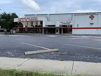In addition to football, other boys' sports include baseball, swimming, and wrestling. The Clearwater Tornadoes compete in a variety of sports for both boys and girls, including basketball, soccer, golf, track and field, lacrosse, and tennis.[7] Under head coach Jack Wilson, the Tornadoes won the boys' basketball state championship in 1981.[8] The school's Jack L. Wilson Gymnasium is named in his memory.