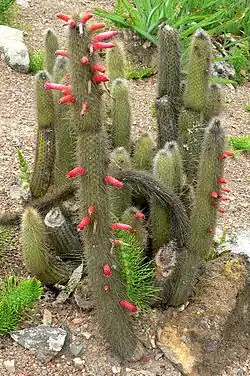 Cleistocactus hyalacanthus is a species of columnar cacti in the genus Cleistocactus. The name comes from the Greek kleistos meaning closed because the flowers hardly open.