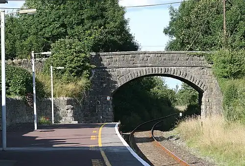 Limerick-Ballybrophy line passing under the R490 road at Cloughjordan station