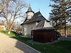Coșula Monastery is a monastery of monks located in the village of Coșula (in Botoșani County), at a distance of 20 kilometers southeast of Botoșani city. This is reached by walking 3 km on a county road on the right DN 28 B. Coșula Monastery dates from the year 1535, when the great treasurer Mateiaș built a monastic complex here. The Coșula monastery was the only one in Botosani county that also had the painted exterior. It is also known for its 500-year-old fresco and the legendary Yellow Coșula. On the fresco are represented the scene of Pentecost and the "Savior's Cross".