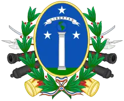In 1817, two new coats of arms emerged. The first one, created in June, showed a similar pillar and globe, and the motto Libertad ("Liberty") over them, together with the words Unión y fuerza ("Union and strength") on a black blue field.