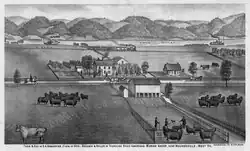 1877 Print showing Bennett Cockayne's farm along with Samuel A.J. Cockayne's house