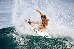 At age 7, Coco Ho began following in the footsteps of her surfer family. Her father, Michael Ho, was formerly a professional surfer (World Cup and 1982 Pipe Masters), as was her uncle, Derek Ho (1993 World Champion). Her brother, Mason Ho (1st Place Cold Water Classic ASP Pro Jr. 2008), played a major role in her early surfing influences.[1] Ho earned her first sponsorship at 8-years-old, and at age 17, she qualified for the ASP Women's World Championship Tour. In 2009, she won the Rookie of the Year award. Raised on Oahu's North Shore, Ho spent most of her time surfing the "Seven Mile Miracle.” She is the face for the Volcom clothing brand.[2]
