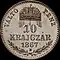 4 krajczár | 27 mm | "MAGYAR KIRÁLYI VÁLTÓ PÉNZ", Small coat of arms with angels | 1868 | ||